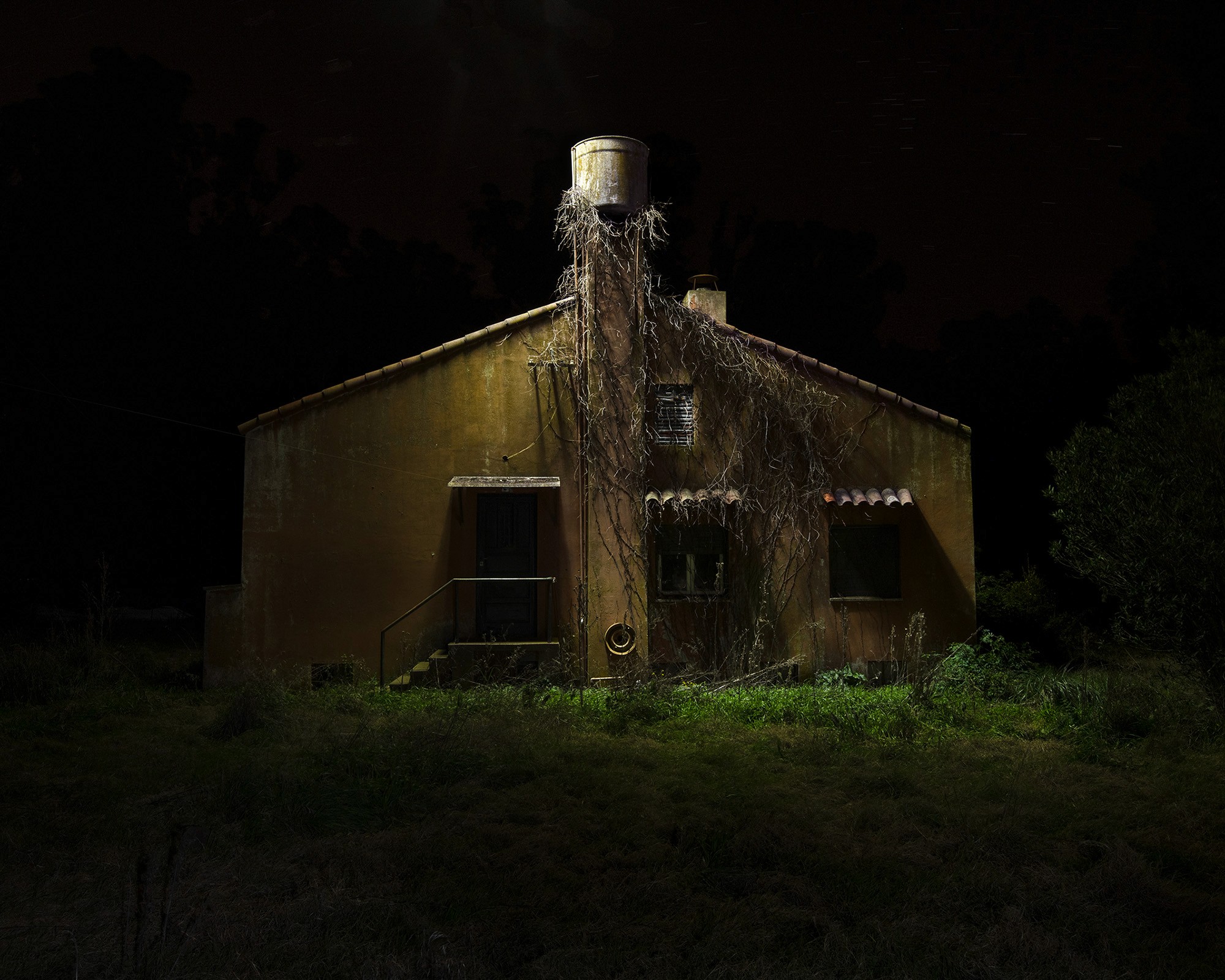 Cada trabajo da cuenta de una relación -si no amorosa, al menos tolerable- entre esa oscura inmensidad, sus habitantes y él. De alguna manera, sus espíritus se reconocen en sus soledades, miedos, ira, deseo, lucha por resistir, vivir, amar. Las obras de Guillermo son oscuras porque es en la oscuridad donde se fecunda la vida. Los animales lo miran a los ojos, las construcciones le revelan su mejor perfil, los árboles se abren y lo dejan pasar porque se saben rotos. Y desde ese lugar, se dejan registrar bajo su mágico punto de vista. Es entonces, en ese instante de reconocimiento, justo allí, donde aparecen ellas: ánimas proyectadas en el reflejo de las pupilas fotografiadas que dibujan otras formas que dan sentido a su vida y a su obra, permitiéndoles integrarse a su luz, aquella que guarda en su propia mirada.