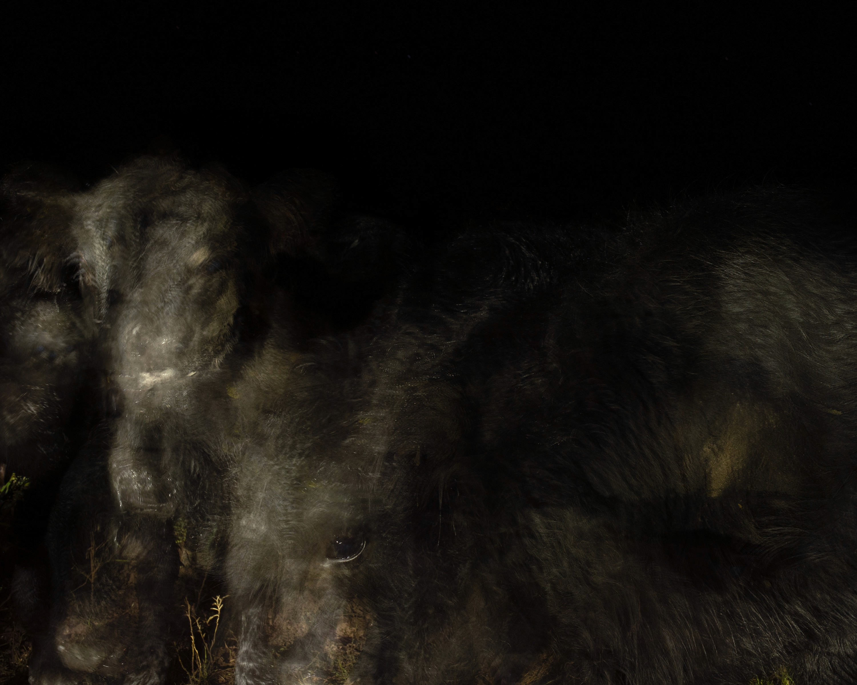 En Ánimas, Srodek-Hart se mueve en territorios donde lo visible empieza a volverse inestable. Sus imágenes construyen escenas en las que lo humano y lo animal se rozan, y donde la oscuridad no oculta, sino que deja aparecer otras formas.
