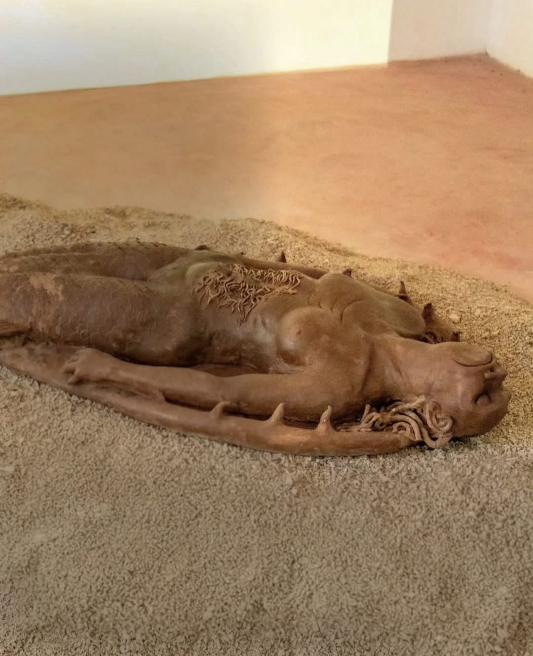La artista Adriana Bustos y la curadora Eva Grinstein se reúnen el sábado 11 de abril a las 16 h para conversar sobre Pejerreina, obra que forma parte del recorrido escultórico a cielo abierto de MUSEOCAMPO Cañuelas.