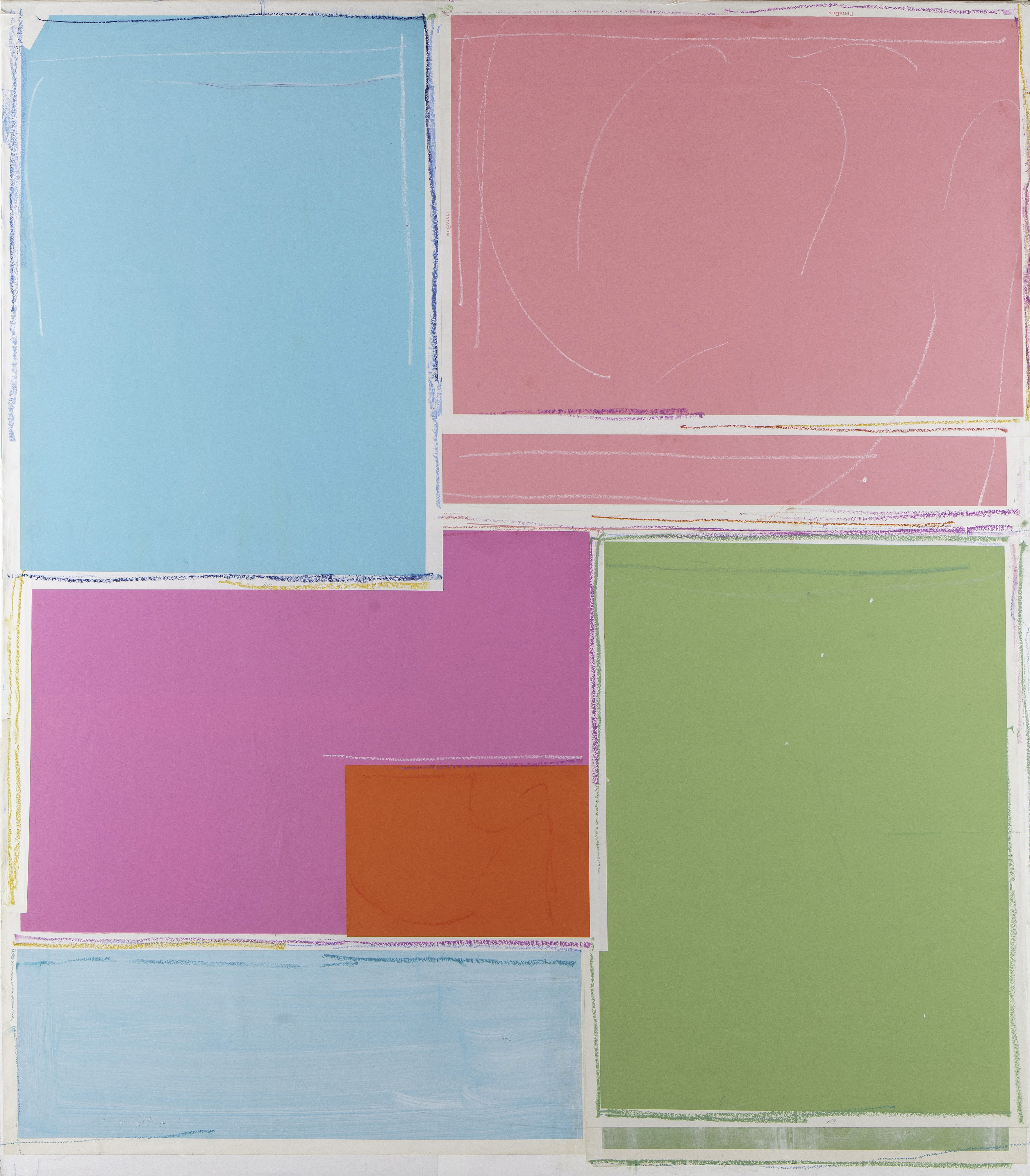 Una serie de Obras Collages de gran formato y una serie de pinturas sobre telas de