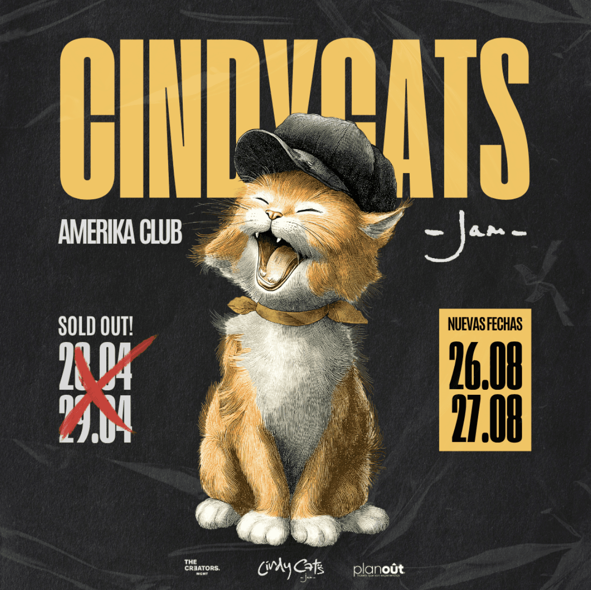 El 26 y 27 de agosto Cindy Cats regresa a Amerika con nuevos invitados y nuevo setlist para continuar su camino ascendente en el que la protagonista es la música.