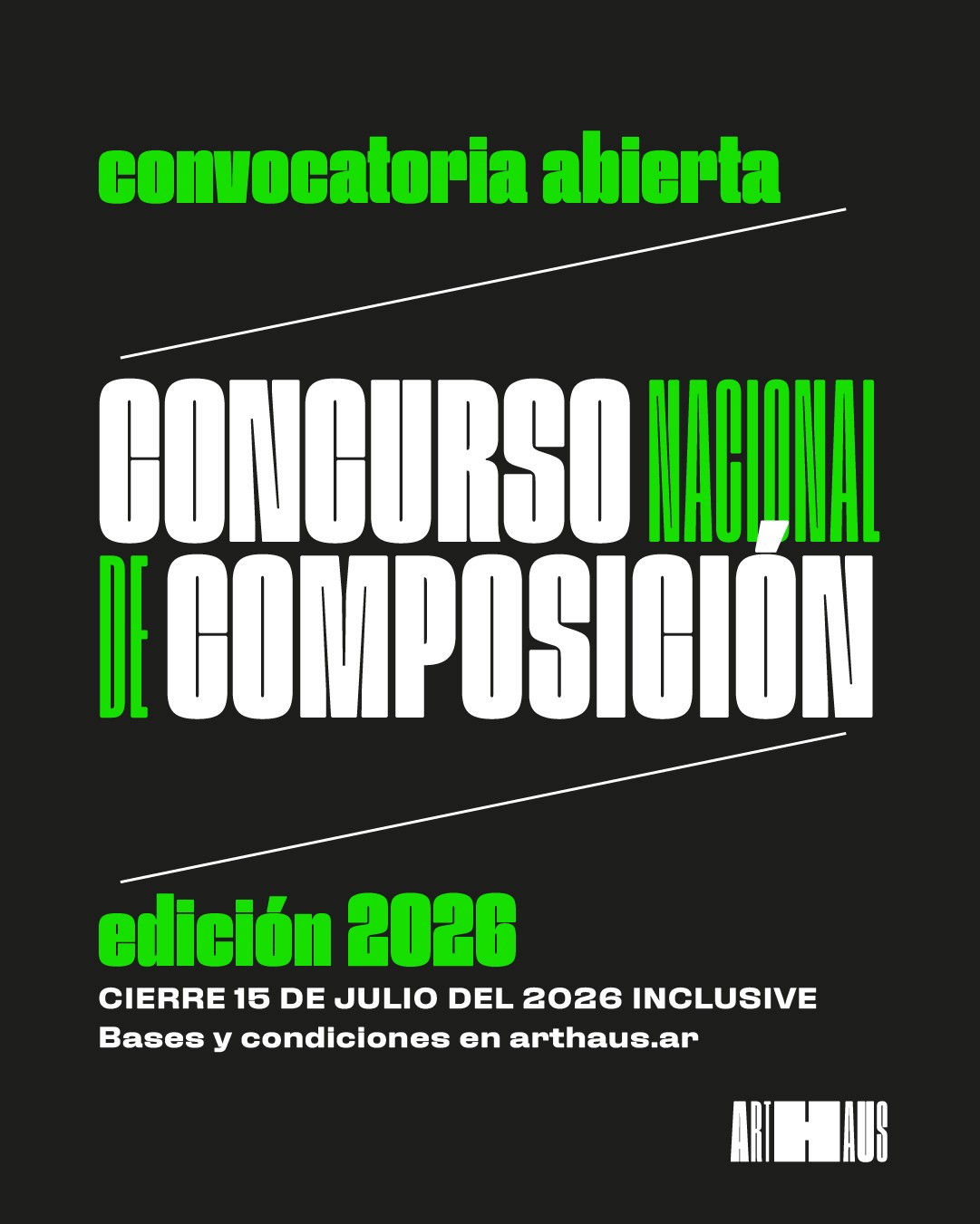 Concurso Nacional de Composición ArtHaus 2026 La convocatoria al Concurso Nacional de Composición ArtHaus 2026 tiene como objetivo incentivar la composición y la creación de nuevas obras de música contemporánea para ensamble de cámara dirigido. En esta edición se contemplarán obras instrumentales con o sin electrónica, con o sin video. El concurso, sin límite de edad, está destinado tanto a compositoras y compositores argentinas/nos como a compositoras y compositores extranjeras/ros residentes en el país. Un jurado nacional e internacional premiará una partitura reciente, original e inédita que responda a los criterios del concurso. La compositora o el compositor ganadora/or recibirá un premio en pesos argentinos y la obra premiada integrará la temporada de conciertos del Ensamble ArtHaus. BASES Y CONDICIONES