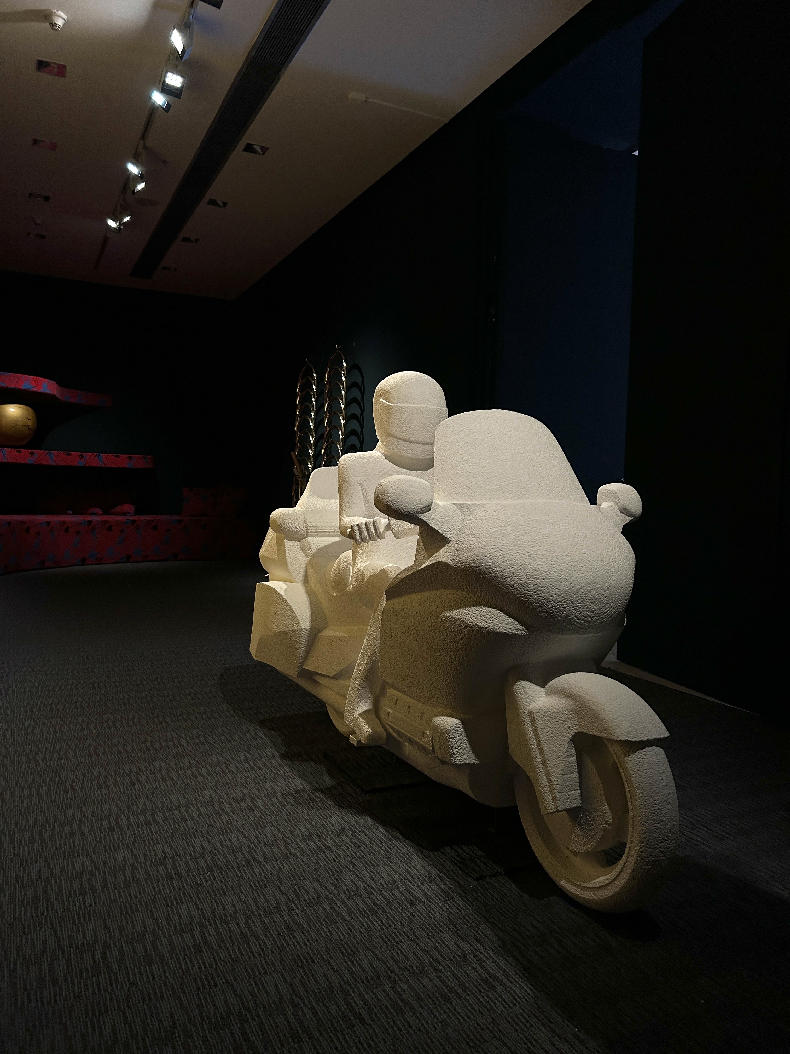 A través de una lectura original de la atmósfera cultural de los años noventa, la decoración de los clubes nocturnos, los clichés del turismo popular y la exaltación de las superficies llevan al límite la excentricidad de la forma, hasta sumergir al visitante en un escenario evanescente de pura ilusión.