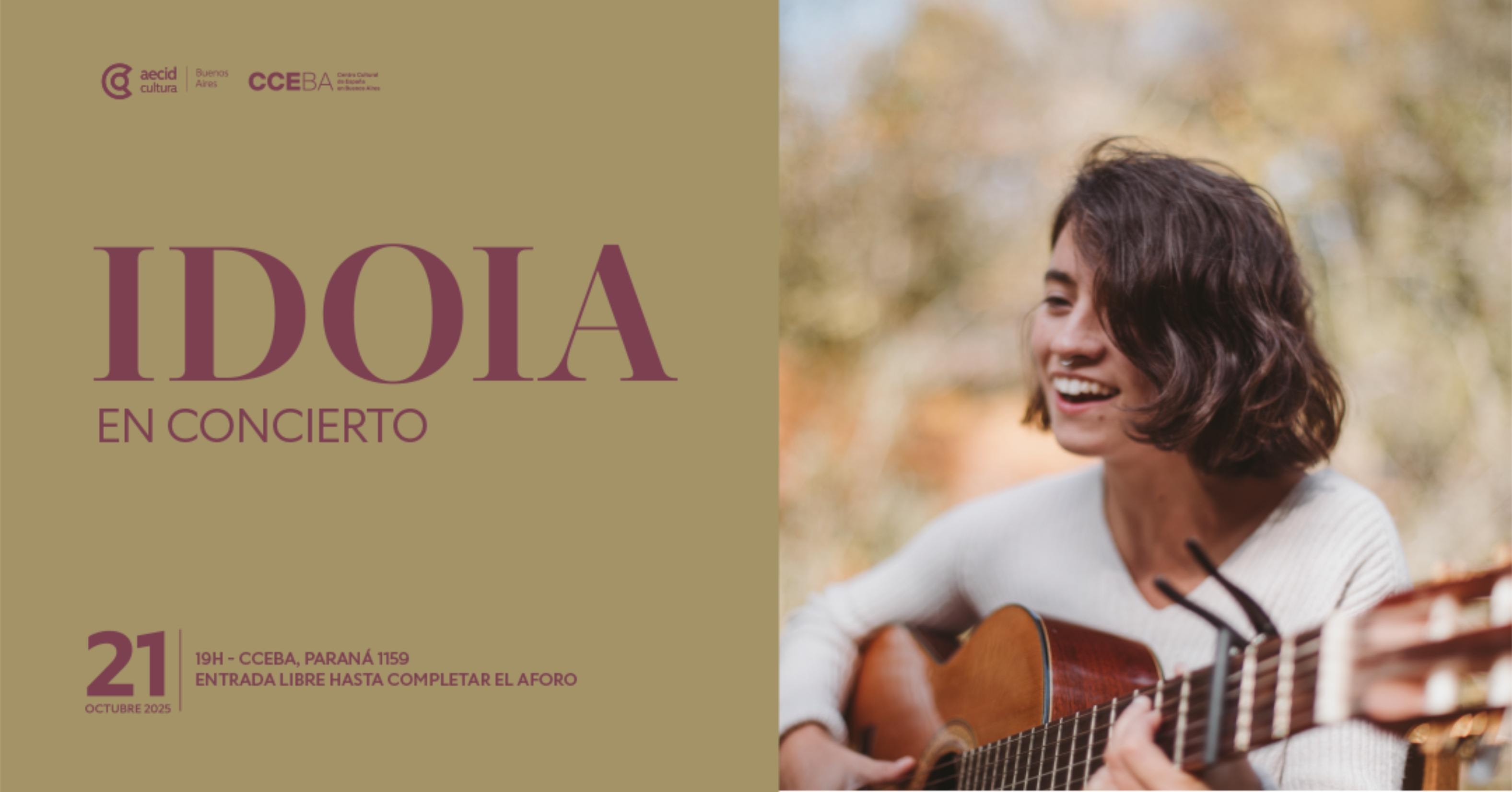 IDOIA presenta DE AMAR Y DESANDAR | OCTUBRE 21 en CCEBA El próximo 21 de octubre IDOIA, la sorpresa de la canción del País Vasco, se presentará por primera vez en vivo en Buenos Aires para interpretar en vivo su reciente álbum integrado por composiciones propias que hacen referencia a distintas experiencias personales y al amor en todas sus formas. La cita será a las 19h, con entrada libre, en el Centro Cultural de España en Buenos Aires (CCEBA) ubicado en Paraná 1159, CABA. El ingreso es por orden de llegada hasta completar la capacidad de la sala.