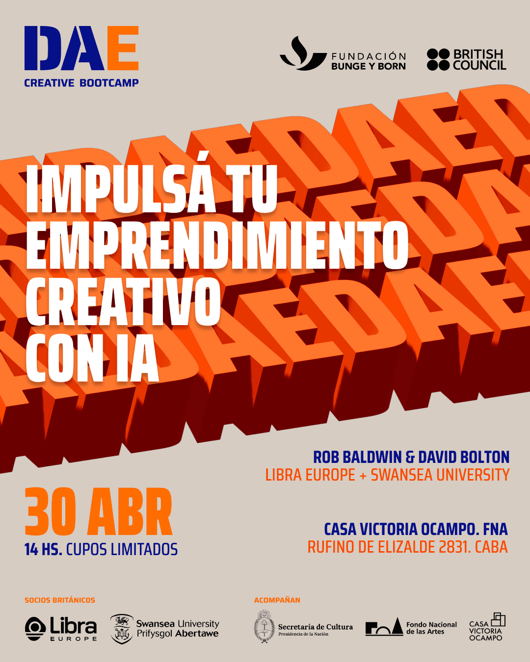 La clase magistral abierta ¨Impulsá tu emprendimiento creativo con IA¨ estará a cargo de expertos del Reino Unido, de la Swansea University (Gales) y de Libra-Europe (Manchester, Inglaterra). Se realizará el jueves 30 de abril de 14 a 15hs en Casa Victoria Ocampo, sede cultural del Fondo Nacional de las Artes.