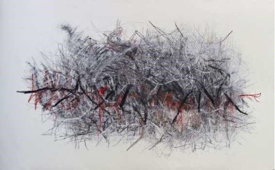 Llevo años siguiendo la extraordinaria obra gráfica de María Emilia Marroquín. Dibuja sin cesar. Sus dibujos producen un efecto de atracción y acaparan el espacio. Utiliza el carbón, el grafito y el pastel tiza. El paisaje de su infancia, la Pampa argentina, el bosque y la gran ciudad impregnan las texturas del lenguaje gráfico. Sus temas son el devenir humano y la relación- cultura- naturaleza.