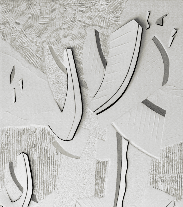"Esta exhibición reflexiona sobre el pasado y el presente de la grabadora contemporánea Irma Amato, y para comenzar se remonta a medio siglo atrás, cuando aquella joven que aún no soñaba con su destino artístico viajaba un día cualquiera en colectivo. Bastó con un simple estímulo perceptivo para ver un más allá en el interminable paredón y la persona anónima que lo caminaba. Aceleración y pausa. Movimiento y quietud. La figura humana se hace ver, por momentos translúcida, para desaparecer luego en un abrir y cerrar de ojos. Intermitente. Así nace la primera fase de trabajo de Amato, con xilografías inundadas de muros que son al mismo tiempo límite y expansión. La economía de medios gráficos cede paso a un tratamiento de cierto corte pictórico que sólo podrá encontrarse en las aguatintas y aguafuertes de los años 80, donde se sugiere la presencia antropomorfa ya desarmada y vuelta a armar entre las ruinas de una arquitectura moribunda. Sobrevuela un clima de violenta tensión que se sostendrá en las litografías que cierran esa década. En torno al nuevo milenio, un giro conceptual profundiza el interés de Amato de trabajar con problemas que están dentro de las obras mismas, apostando por la síntesis de la forma, parámetro que orienta sus búsquedas hasta la actualidad. Los perfiles, que pierden estructura ósea y ganan peso geométrico, adquieren volumen a través del modelado. En este punto, cabe destacar que los asuntos cromáticos solo se resuelven en tanto preservan el clima de la imagen pero no se erigen como un terreno de exploración per se. La fascinación escultórica de una joven Amato halló eco en la madurez de su itinerario, cuando a partir de 2005 la técnica del troquelado le ofrece un universo laborioso de desarrollo del relieve, que llegará a su punto más radical en una serie de cajas tan obsesivas como lúdicas. Planos sobrepuestos construyen verdaderos ambientes, aspecto que se rastreará también en los más recientes gofrados. En palabras de la propia artista, “cada obra es el fragmento de una totalidad. Casi siempre es así. Son presencias de una realidad, la mía, recortada, cada una de ellas dejando el lugar para una próxima. Los paisajes cambian, la atmósfera tensa se mantiene. Siempre aparecen las mismas criaturas, los mismos protagonistas.”