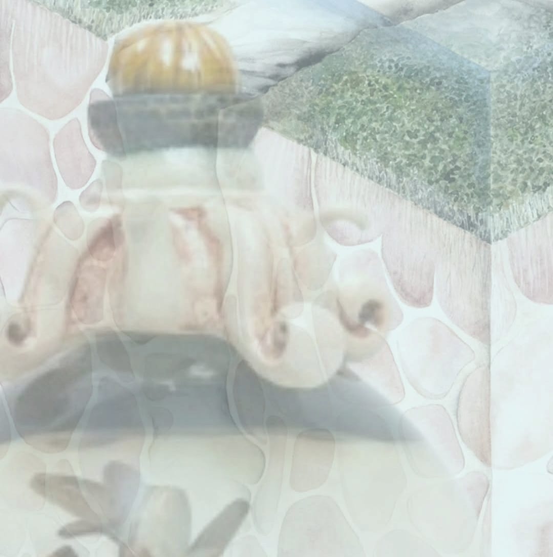 Cerámicas, acuarelas y grafitos construyen escenas de observación minuciosa: paisajes que no remiten a un territorio preciso, ecosistemas imaginados, especímenes que parecen surgir de un tiempo suspendido. Cada pieza deja una huella de asombro y propone una pausa, un gesto atento frente a aquello que creíamos conocido.