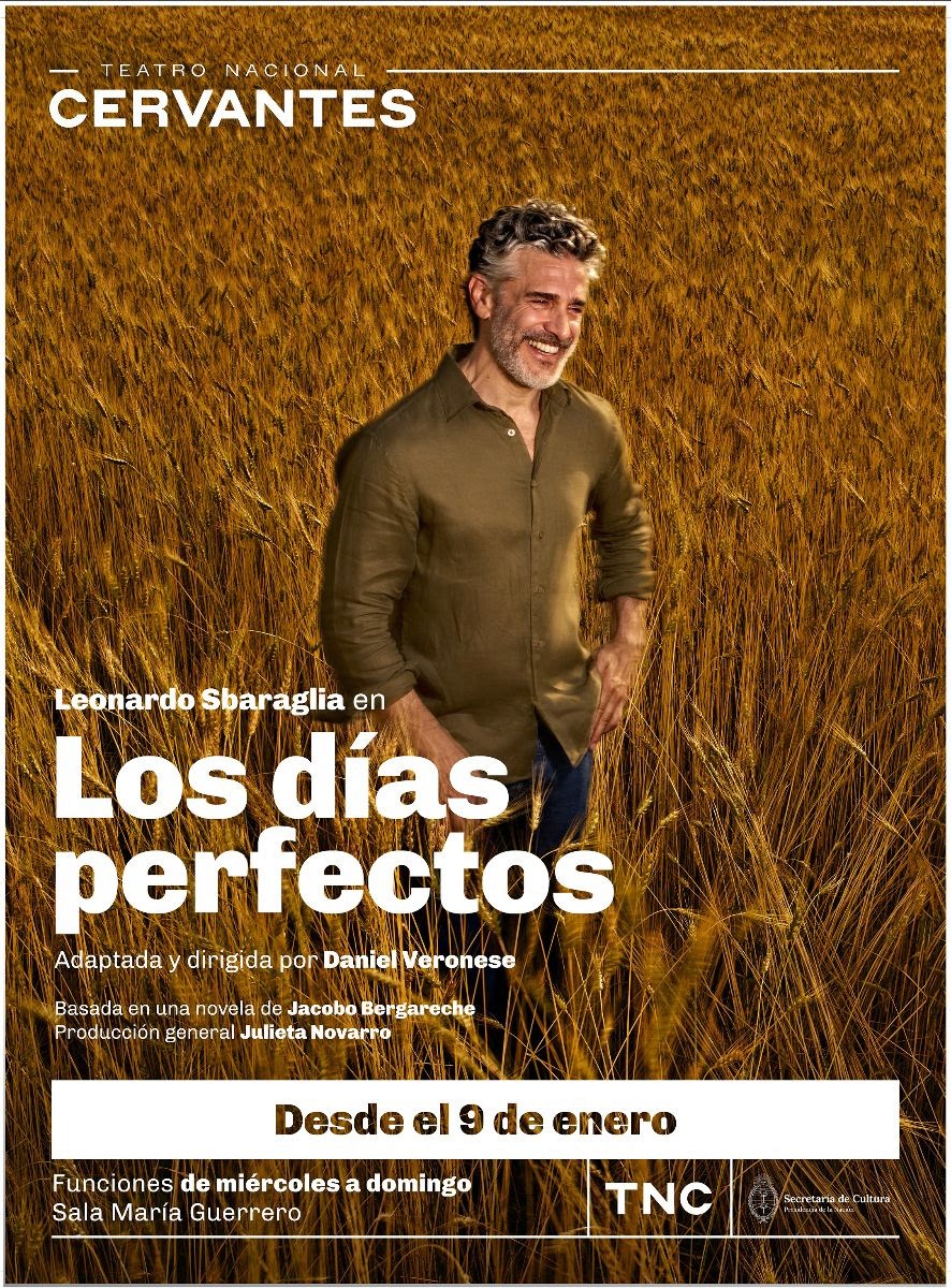 SE ESTRENA EN BUENOS AIRES LOS DÍAS PERFECTOS, BASADA EN LA NOVELA DE JACOBO BERGARECHE Luego de una muy exitosa gira por España, Rosario y Córdoba, llega al Teatro Nacional Cervantes la obra Los días perfectos, un unipersonal protagonizado por Leonardo Sbaraglia, con dirección de Daniel Veronese y producción de Julieta Novarro, basado en la novela del escritor español Jacobo Bergareche, publicada por Libros del Asteroide. La obra tendrá funciones de miércoles a domingos a las 21 a partir del 9 de enero y hasta el 1° de febrero en la sala María Guerrero. Más información sobre la obra aquí. Y entradas disponibles aquí.