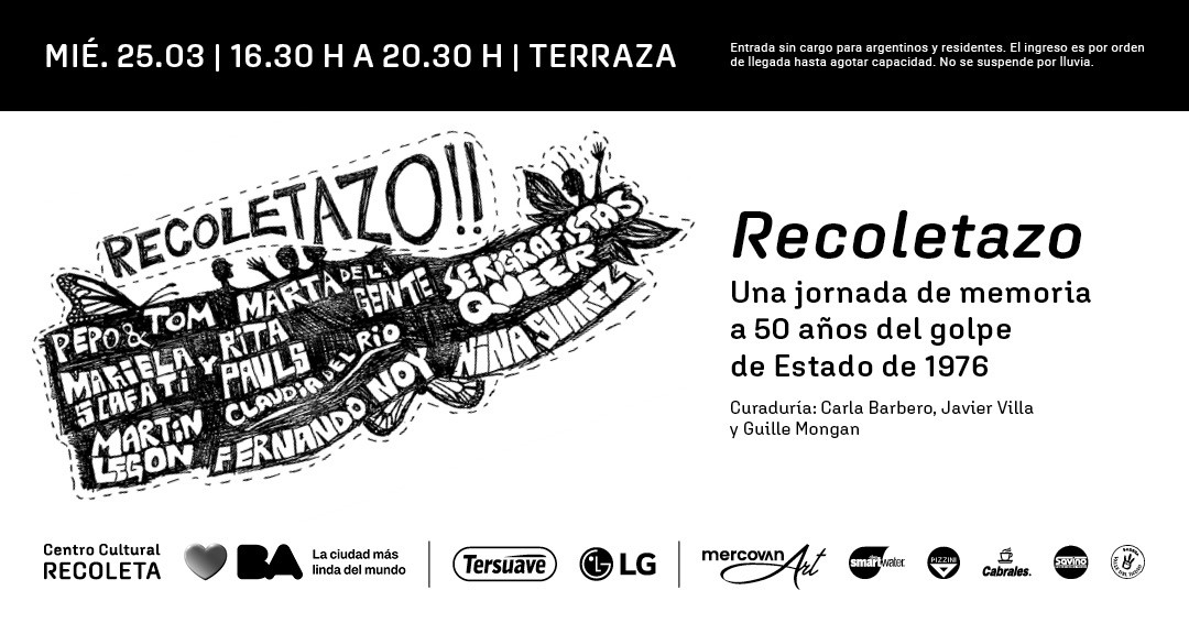 En el marco de los trabajos de memoria, al cumplirse 50 años del golpe de Estado ocurrido en Argentina en 1976, el CCR presentará el 25 de marzo Recoletazo, una jornada con la curaduría colectiva de Carla Barbero, Javier Villa y Guille Mongan. La misma consistirá en una acción a lo largo de toda la tarde que cita aquel gesto inaugural de las poéticas políticas locales: el Siluetazo (1983). Esta jornada se plantea como un espacio para interrogar las huellas de la historia en los cuerpos, las estéticas que esas marcas producen y las estrategias que el arte contemporáneo pone en juego para pensarlas en el presente.