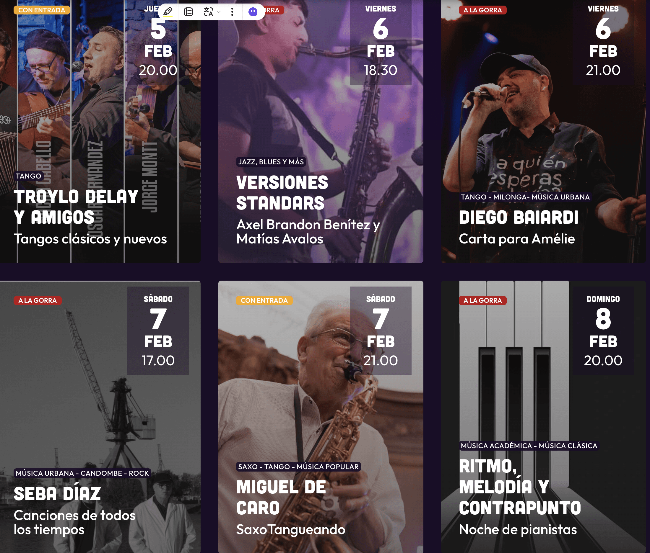 Para su uso como portada de carrousel de agenda cultural de instagram
