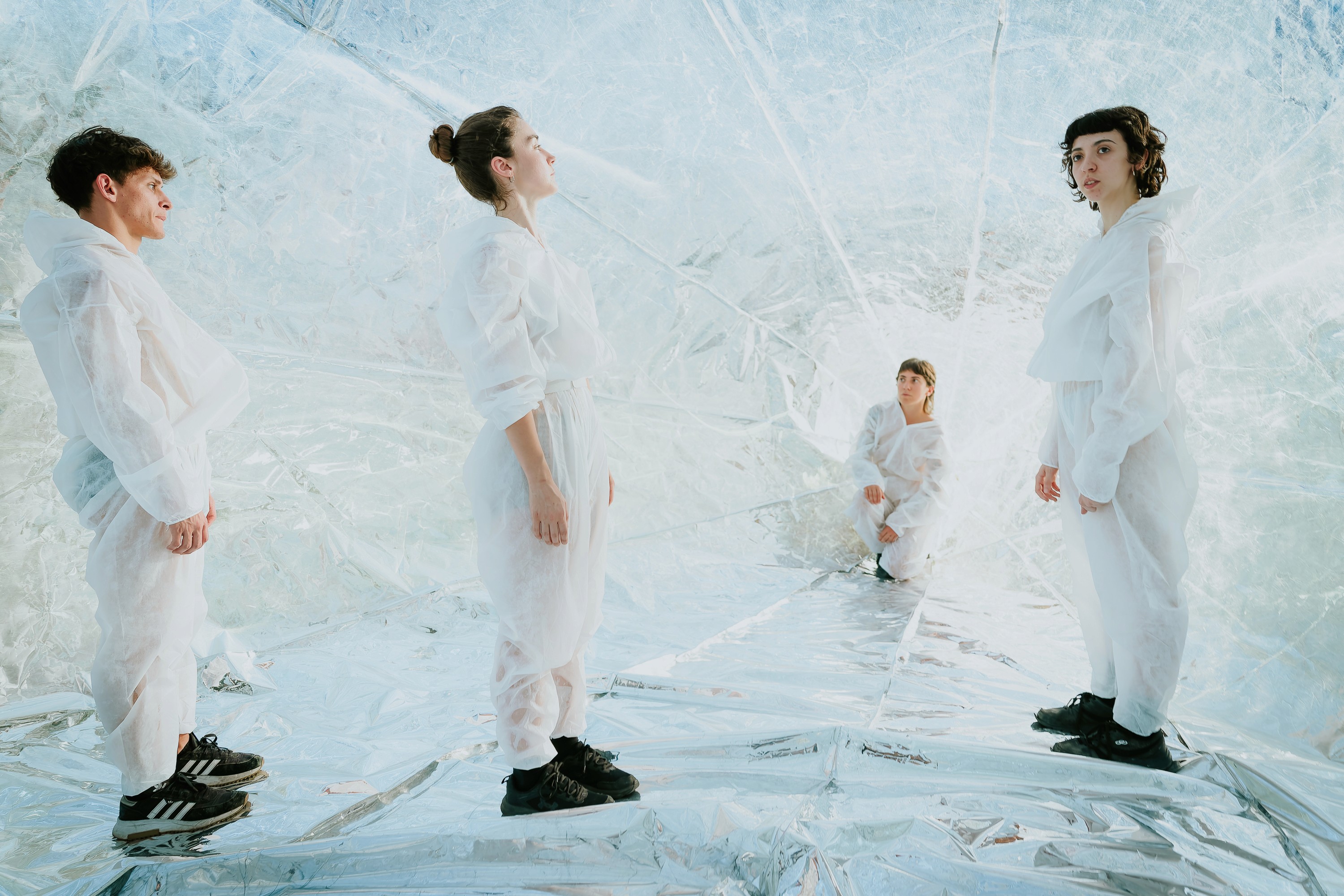 A través de cuerpos, objetos y dispositivos perceptivos, performers y espectadores comparten un ecosistema cambiante que invita a reflexionar sobre nuestro lugar en el universo y sobre las fuerzas que atraviesan la materia, los cuerpos y el espacio. Entre objetos de diferentes escalas, prácticas somáticas y entornos participativos, intérpretes y espectadores habitan un paisaje en transformación que interroga las relaciones entre cuerpo, universo y percepción.