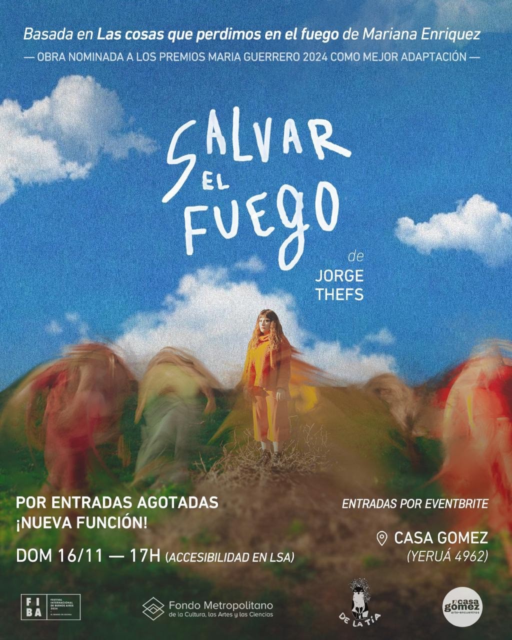 los 10 años de la BIENAL de Arte Joven y del Festival Abriendo Escena en 2022. Mi casa se estaba quemando y sólo podía salvar una cosa. Decidí salvar el fuego. No tengo dónde vivir pero el fuego vive en mí. Y me defiende discretamente de todo lo impuro. Mi futuro ya no es importante. Sólo cuenta la intensidad del instante.’ Jean Cocteau‘ Salvar el fuego’ nos lleva al universo de ‘Las cosas que perdimos en el fuego’, donde en una cruda pero cercana distopía las mujeres deciden quemarse para no ser quemadas. El material se propone el relato de esta historia desde los matices de Enríquez, que exponen diversas y complejas aristas de la violencia y las razones poéticas y políticas de la inmolación.La puesta propone desembarcar el universo en arquitecturas específicas, actualizando la puesta a cada espacio. La cercanía del espectador con el desarrollo de la pieza genera una suerte de inmersión en el universo de la misma. La pieza no solo se sostiene en la textualidad de la narrativa sino también en los cuerpos, estímulos sonoros y las provocaciones espaciales de la puesta. ¡ÚLTIMA FUNCIÓN DEL AÑO! DOMINGO 16 DE NOVIEMBRE A LAS 17 HORAS (La función es con accesibilidad en lengua de señas) Casa Gómez - Yeruá 4962, Paternal - Entrada general $20.000 - En venta por Eventbrite