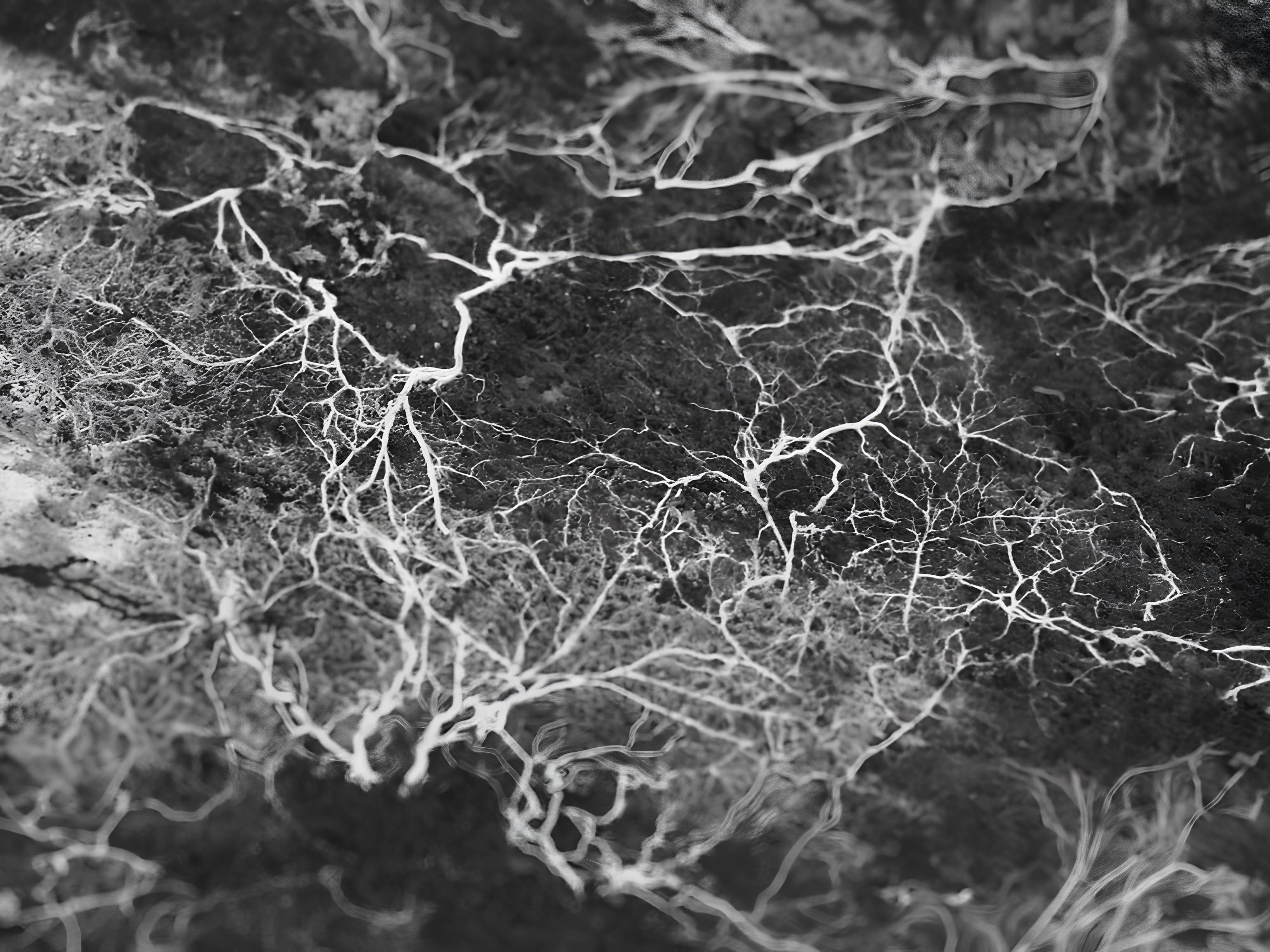 evocan cuerpos en transformación, una bioinstalación sonora que reacciona al ambiente, y huellas de