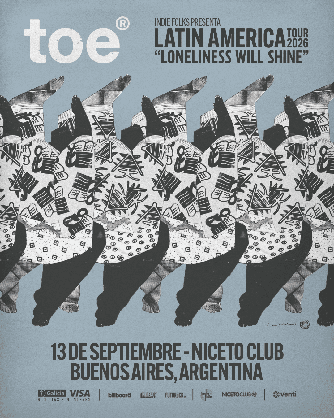 La banda japonesa toe llega a Buenos Aires con un show el próximo 13 de septiembre de 2026 en Niceto Club. Formados en 2000, el cuarteto integrado por Yamazaki Hirokazu, Mino Takaaki, Yamane Satoshi y Kashikura Takashi se consolidó como una de las propuestas más influyentes del post-rock contemporáneo, construyendo un sonido único que combina elementos de math-rock, jazz, pop, R&B y música electrónica con una precisión y sensibilidad distintivas.