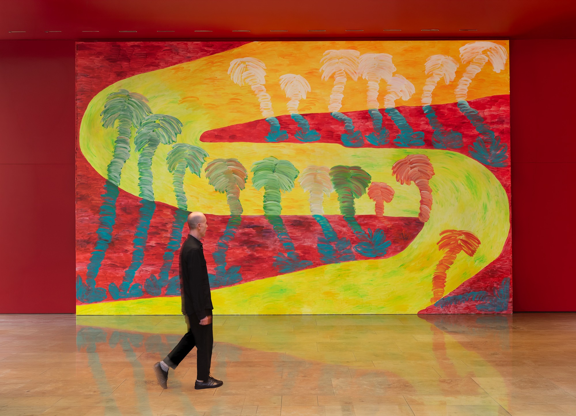 Valeria Maggi pinta inventando: sus paisajes no buscan representar, sino preguntar qué vemos cuando miramos la naturaleza. Las palmeras, idénticas a las de Parque Lezama, permiten pensar en la capacidad de estos seres para construir hábitat más allá de su origen, donde sea que otros lo decidan. Luis Garay trabaja con el cuerpo como herramienta de exploración y memoria. En acciones grupales, entramados corales y escenas de aprendizaje, adolescentes reciben instrucciones para practicar un deporte o una actividad manual y sus cuerpos repiten, desarman y vuelven a intentar una misma acción hasta volverla habitual.