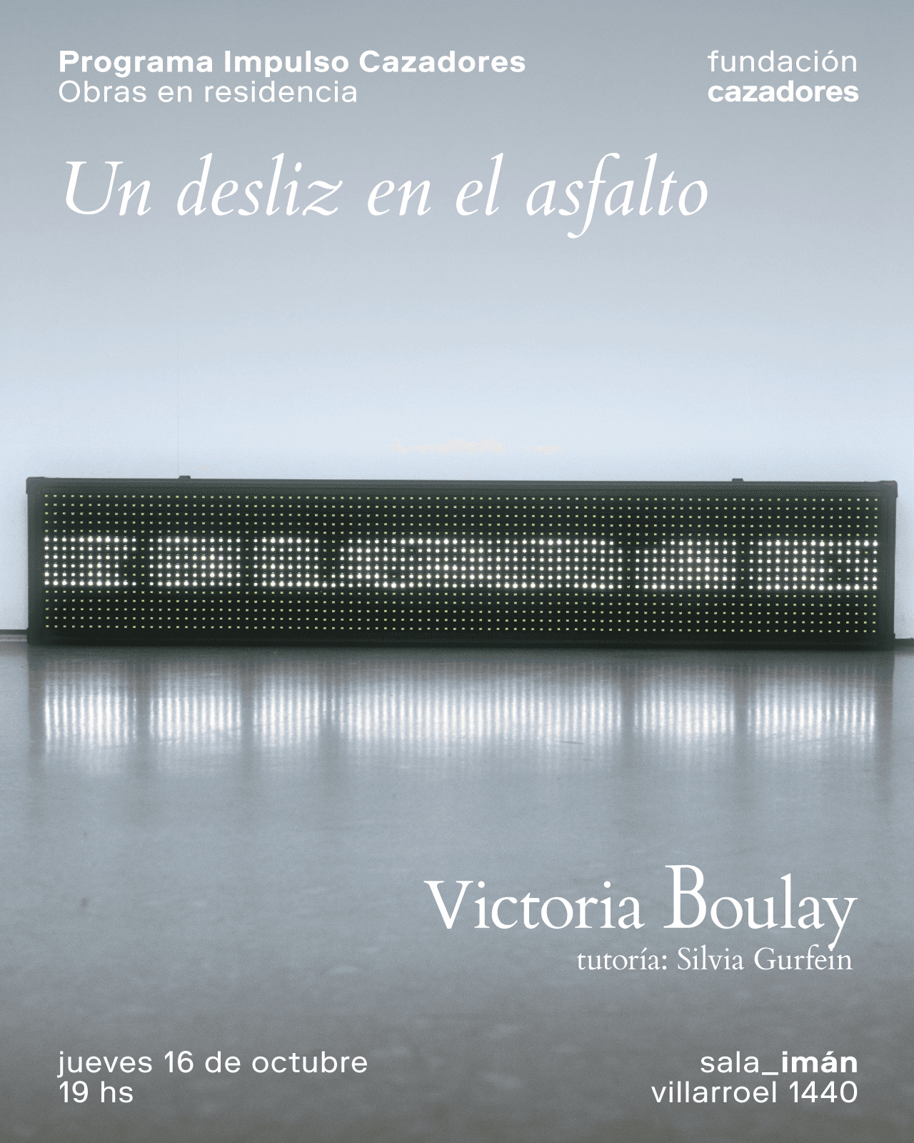 Un desliz en el asfalto, de Victoria Boulay, segunda residencia del Programa Impulso Cazadores | Obras en Residencia 2025, que tendrá lugar el próximo jueves 16 de octubre a las 19 h en Fundación Cazadores (Villarroel 1438, CABA).